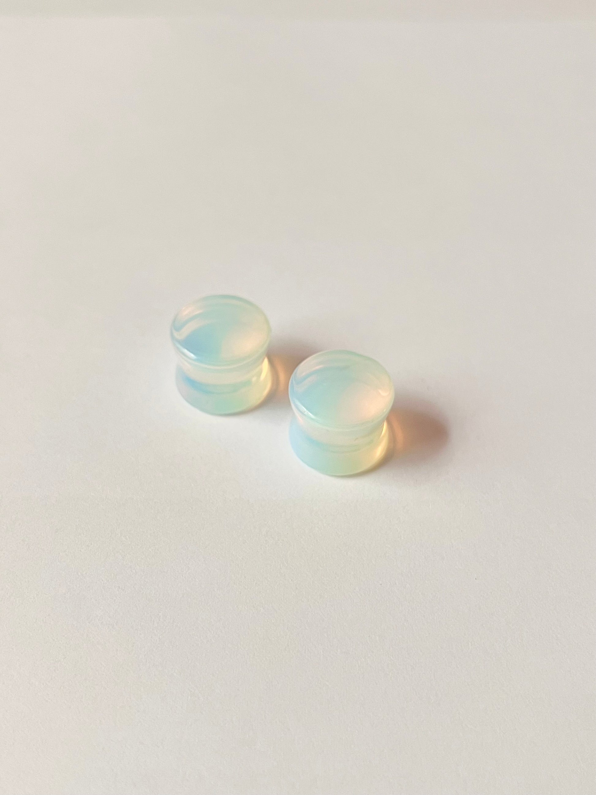 Elevate your style with hand-cut and polished opalite gauges. You'll turn heads with this edgy and unique look.