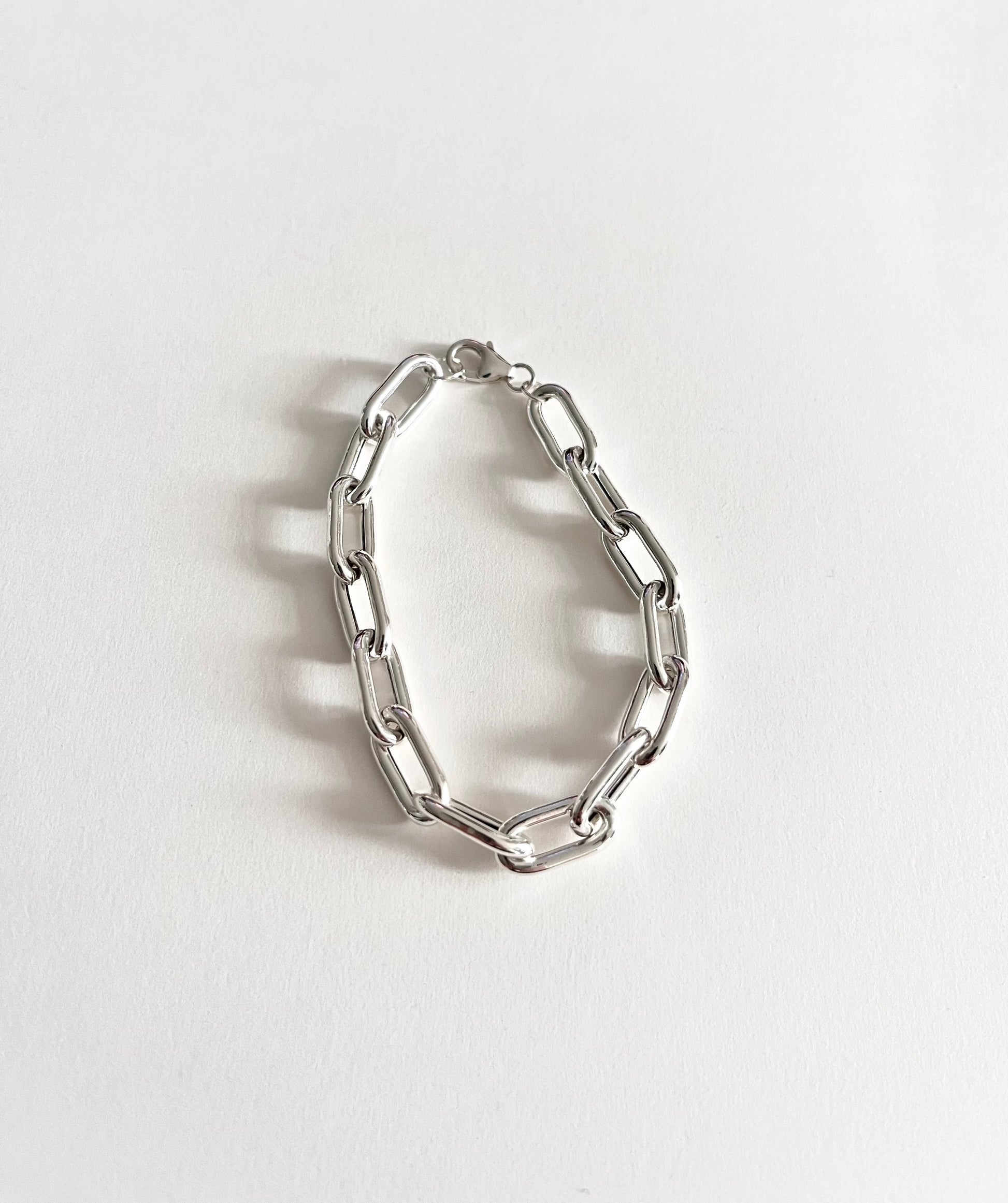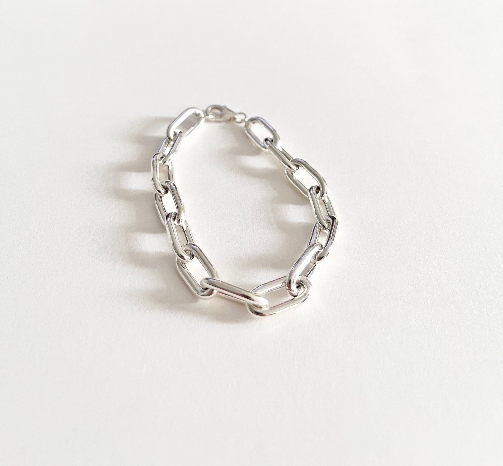 Make a bold statement with this handcrafted sterling silver chunky elongated curb chain bracelet. Its playful design adds a touch of edge and elegance to any outfit, making it the perfect accessory for turning heads and sparking conversations. Durable yet stylish, it’s a fun way to shine every day.